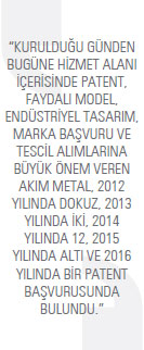Kurulduğu günden bugüne hizmet alanı içerisinde patent, faydalı model, endüstriyel tasarım, marka başvuru ve tescil alımlarına büyük önem veren Akım Metal olarak, 2012 yılında dokuz, 2013 yılında iki, 2014 yılında 12, 2015 yılında altı ve 2016 Haziran ayında bir patent başvurusunda bulunduk. Toplamda tescillenen patent sayımız yedi adettir. Bunun yanında altı adet de faydalı model tescil belgemiz mevcut. Endüstriyel tasarımdaysa geçmişten bugüne toplamda iki tescil belgesi aldık. Dokuz adet de marka başvurumuz ve tescil belgemiz bulunuyor.