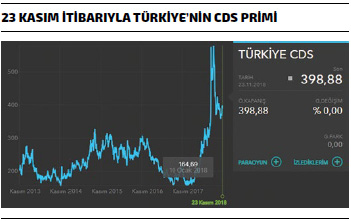 Bu yılın başında 165 seviyesinde olan Türkiye’nin CDS prim seviyesi 550 tavan seviyesine kadar çıktıktan sonra güncel olarak 400’lü seviyelerde ilerliyor. Yıl başından bu yana iki kattan fazla bir artış yaşanmış durumda.