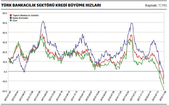 Merkez Bankası verilerine göre, Ağustos 2018 sonunda bankacılık sisteminin 2,5 milyar TL’ye ulaşan yurt içine kullandırılan kredi tutarı 2 Kasım’da 2 trilyon 316 milyar TL’ye indi. Kur etkisi de bulunmakla birlikte, kredilerin Ağustos ayı sonuna göre düşüşü ise 230 milyar TL’yi buluyor. Bu da kredi stokunun yüzde 9’una karşılık geliyor.