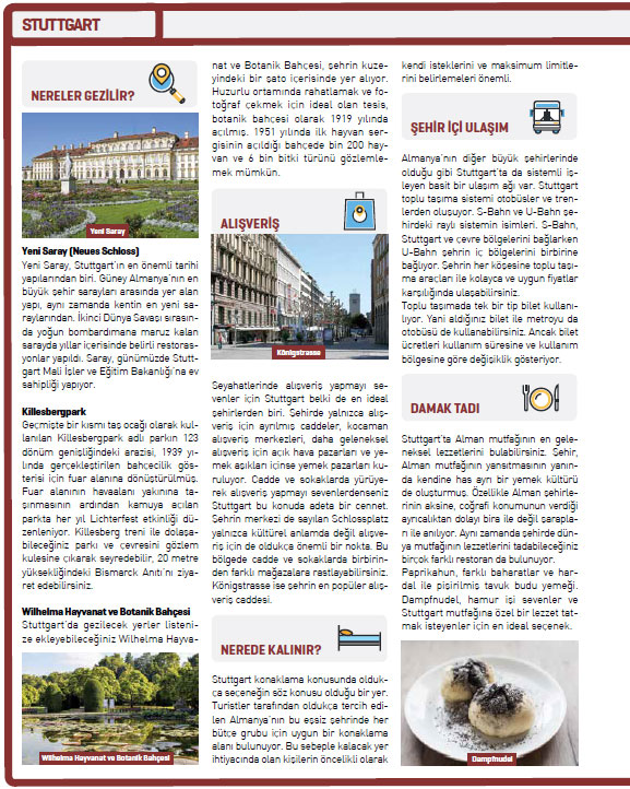 Tüm dünyada sanat ve kültür hayatıyla nam salmış bir şehir olan Paris ise aslında dünyanın ekonomik ve politik merkezlerinden biri. Günümüzde Avrupa’nın en önemli başkentlerinden olan şehir, 12,4 milyonluk nüfusa sahip. Şehrin önemli turistik yerlerinin başında Notre Dame Katedrali, Şanzelize, Eyfel Kulesi, Louvre Müzesi ve Zafer Takı geliyor. Stuttgart, Almanya’nın altıncı büyük şehri ve aynı zamanda ticarette en aktif kentlerden biri. 2015 yılında yaklaşık 625 bin olan nüfusuyla şehir, Baden-Württemberg eyaletinin başkenti ve Stuttgart vilayetinin (Regierungsbezirk) merkezi konumunda yer alıyor.