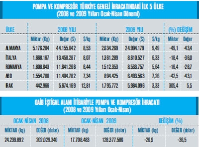 Ülkemiz pompa ve kompresörler ihracatı 2009 yılının Ocak-Nisan ayları arasında 128 milyon 377 bin dolar olarak kaydedilmiş durumda. Pompa ve kompresörler ihracatı mız 2009 yılının Ocak-Nisan ayları arasında ülkeler bazı nda incelendiğinde ise Almanya’nı n ilk sırada yer aldığı görülüyor. Söz konusu ülkeye 2009 yılının Ocak-Nisan döneminde 24 milyon 994 bin dolarlı k pompa ve kompresörler ihracatı yapılmış. Almanya’nın ardından en fazla pompa ve kompresörler ihracatı gerçekleştirdiğ imiz ikinci ülke ise İtalya olmuş. Bu ülkeye 2009 yılının Ocak-Nisan döneminde 8 milyon 610 bin dolarlık pompa ve kompresörler ihracatı gerçekleştirilmiş. Aynı zaman diliminde pompa ve kompresörler ihracatımızın en fazla olduğu üçüncü ülke ise Romanya olmuş. Romanya’ya 2009 yılının ilk 4 aylık döneminde 8 milyon 533 bin dolarlı k pompa ve kompresörler ihracatı yapılmış. Romanya’nın ardından en fazla pompa ve kompresörler ihracatı gerçekleştirdiğ imiz ülke ABD olmuş ABD’ye 2009 yılının ilk 4 aylık ihracat döneminde 6 milyon 493 bin dolarlık pompa ve kompresörler ihracatı yapılmı ş. ABD’nin ardından ise en fazla pompa ve kompresörler ihracatı yaptığımız beşinci ülke Irak olmuş. Irak’a 2008 yılı- nın Ocak-Nisan döneminde 5 milyon 674 bin dolarlık pompa ve kompresörler ihracatımız söz konusu iken 2009 yılının aynı zaman dilimine gelindi- ğinde yüzde 5,5 oranında artış ile 5 milyon 984 bin dolarlık ihracat gerçekleştirilmiş. Irak’ın ardından ise en fazla pompa ve kompresörler ihracatımız Rusya Federasyonu’na olmuş. Rusya Federasyonu’na 2009 yılının Ocak-Nisan döneminde 5 milyon 213 bin dolarlı k pompa ve kompresörler ihracatı gerçekleştirilmiş. Fotoğraf Altı: Fatih Bakan EKOMAK Kompresör Genel Müdür Toplamda yüzde 15’lik artış var. Nisan ayında geçtiğimiz aylara göre yüzde 15’lik bir artış yaşadı k. Tabi bu artış piyasanın açıldığı anlamına gelmesin. Sadece tek bir veriye dayanarak piyasanın inip çıktığı yorumları- nı yapamayız. Toplamda yüzde 15’lik bir artış var ve piyasanın açılıp açılmadığı kararını vermek için biraz zaman geçmesi gerekiyor. Bence piyasalarda çok ani bir daralma yaşandı. Yavaş yavaş gelişme olacak ve belli bir noktaya oturacağı nı düşünüyorum. bizim bugün yaptığımız ihracat 2004 yılına denk geliyor ise 2004 yılı seviyelerinden başlayacağız ondan sonra da gelişmeye devam edeceğiz. Türkiye’deki makine üreticileri ölçek ekonomisinde oldukça geri. Esas itibariyle rekabetçi olabilecek şekilde ölçek ekonomisinden yararlanmalıyız. Türk makine üreticileri rekabetçi olabilmek için daha fazla teknik çalışma yapabilmeli. Bizim ülkemizde 40 firma varsa bu sektörde Almanya’da 5 firma var. Ancak Almanya 5 Şrmayla 100 üretiyorsa biz 40 firmayla 25 üretiyoruz. Dengesizlik var. Global ekonomide rekabetçi olunmalı. Kendilerinden firmalar bir araya gelerek üretim yapabilmeli ve büyüyerek büyük aktörlerle rekabet edebilecek seviyeye gelmeliyiz. Bunun için birlikte üretme gibi hedefler gündeme gelebilir. Diğer taraftan kayıt dışı ekonomi çok ciddi bir şekilde kayıt altında olan firmaları engellemektedir. Böyle gitmesi vergisini veren firmalara karşı büyük haksızlık.