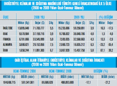 Makine ve aksamları ihracatı- mızın en önemli kalemlerinden biri olan endüstriyel klimalar ve soğutma makineleri ihracatı mız 2009 yılının Ocak-Temmuz döneminde gerileme kaydetti. Geçtiğimiz yılın Ocak- Temmuz dönemi ile karşılaştı- rıldığında değ er bazında yüzde 27,2 oranında gerileyen endüstriyel klimalar ve soğutma makineleri ihracatımız, miktar bazı nda ise yüzde 17,1 oranında gerileme gösterdi. Değ er olarak ise 2008 yılının Ocak-Temmuz döneminde 561 milyon 541 bin dolar olan endüstriyel klimalar ve soğutma makineleri ihracatımız 2009 yılının Ocak-Temmuz döneminde ise yüzde 27,2 oranında azalarak 408 milyon 893 bin dolar oldu. Endüstriyel klimalar ve soğutma makineleri ihracatımızın en fazla olduğu ülke ise İngiltere. Söz konusu ülkeye 2009 yılının Ocak-Temmuz döneminde 59 milyon 250 bin dolarlık endüstriyel klimalar ve soğutma makineleri ihracatı gerçekleştirildi. Bu mal grubu içerisindeki en büyük ikinci ihracat pazarı- mızın ise Irak olduğu görülüyor. Irak’a 2008 yılının Ocak Temmuz döneminde 37 milyon 159 bin dolarlık endüstriyel klimalar ve soğutma makineleri ihracatımız söz konusu iken 2009 yılının aynı dönemine gelindiğ inde ise bu değ er yüzde 4 oranında artış kaydederek 38 milyon 640 bin dolar ihracat düzeyi yakalandı. Endüstriyel klimalar ve soğutma makineleri ihracatımızın üçüncü en büyük ihracat pazarı ise Fransa oldu. Fransa’ya 2009 yılının Ocak-Temmuz döneminde 32 milyon 568 bin dolarlık endüstriyel klimalar ve soğutma makineleri ihracatı yapıldı. Endüstriyel klimalar ve soğutma makineleri ihracatımızın 2009 yılı Ocak-Temmuz döneminde ilk on ülke içinde en fazla artış gösterdiği ülkenin ise Irak olduğu görülüyor. Fotoğraf altı: Rıza Aslan İzmak Muhasebe Sorumlusu “Sac fiyatlarındaki artış büyük problem” Temmuz ayı ihracatımız 2 yüz 40 bin euro civarındaydı. Küresel kriz nedeniyle bir düşüş ve gerileme olduğunu söylemem mümkün. Sektör olarak yaşadığımız en büyük problem ise özellikle sac fiyatlarındaki artışlar. Bunların dışında benzinde son günlerde ardı ardına gelen zamlar da aslında sektörümüzü etkileyen sorunlardan bir kaçı olarak sıralanabilir. Küresel bir ekonomik sorun yaşandığı için firmaların tek başı- na bu gibi sorunları aşması zor gibi görünüyor. Bu nedenle hükümetlerin özellikle ihracat yapan firmalara destek olmasını bekliyoruz. Genel olarak sektöre bakıldığında ise yüzde 24,3’lük bir düşüş görülmekte. Bu sene Ocak-Temmuz ihracatı 952 milyon dolara ulaştı. Aynı rakam geçtiğimiz yılın aynı döneminde ise 1 milyar 258 milyon dolardı.