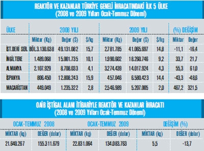 Ülkemiz reaktör ve kazanlar ihracatı 2008 yılının Ocak- Temmuz döneminde 155 milyon 311 bin dolar iken 2009 yılının aynı dönemine gelindiğinde yüzde 13,7 düzeyinde gerileyerek 134 milyon 83 bin dolar olarak kaydedildi. Reaktör ve kazanlar ihracatı mız en fazla olduğu yer ise İstanbul Deri Serbest Bölgesi oldu. Söz konusu bölgeden 2008 yılının Ocak- Temmuz döneminde 49 milyon 131 bin dolarlık ihracat yapılmışken 2009 yılının aynı döneminde ihracatımız gerileyerek 41 milyon 65 bin olarak gerçekleşti. En fazla ihracat İstanbul Serbest Bölgesinden yapılırken, reaktör ve kazanlar ihracatı mızın en fazla yapıldığı ülke ise İngiltere oldu. İngiltere’ye 2008 yılının Ocak-Temmuz döneminde 15 milyon dolarlık reaktör ve kazanlar ihracatı gerçekleştirilmişken 2009 yılının Ocak-Temmuz döneminde ise yüzde 21,7’lik artışla 18 milyon 260 bin dolar seviyesine ulaşıldı. İngiltere’nin ardından ise en fazla reaktör ve kazanlar ihracatı yaptığımız ülkenin Almanya olduğu görülüyor. Almanya’ya 2008 yılının Ocak- Temmuz döneminde 8 milyon 708 bin dolarlık reaktör ve kazanlar ihracatı kaydedilmişken 2009’un aynı dönemine gelindiğinde bu değ er yüzde 61 oranında artışla 14 milyon 17 bin oldu. Reaktör ve kazanlar ihracatımızdaki en büyük ihracat artışımız ise Macaristan pazarına oldu. Macaristan’a 2008 yılının Ocak-Temmuz döneminde 1 milyon 235 bin dolarlık ihracat söz konusu iken 2009 yılının Ocak-Temmuz döneminde yüzde 321,5 oranında artış kaydedilerek 5 milyon 207 bin dolar seviyesi yakalandı. Macaristan’ın ardından ise Almanya’nın reaktör ve kazanlar ihracatımızın en fazla arttığı ikinci pazar olduğu görülüyor. Almanya’ya 2008 yılının Ocak-Temmuz döneminde 8 milyon 708 bin dolarlık reaktör ve kazanlar ihracatımız varken 2009 yılının eş döneminde ise yüzde 61 artışla bu mal grubundaki ihracatımız 14 milyon 17 bin dolar oldu. Fotoğraf altı: Ali Fatinoğlu Sanica Isı Genel Müdür Yardımcı “Krizi yavaş yavaş atlatıyoruz” 1 milyon 200 TL’lik ihracat gerçekleştirdik. Bu rakam fena değ il bizim açımızdan. Hatta ölü sezon için gayet iyi bir rakam olduğunu bile söyleyebilirim. Onun dışında yavaş yavaş krizi atlattık sanırım. Sektör olarak yaşadığımız sorunlara gelince ise en büyük sorunu hammadde fiyatlarında yaşıyoruz. Açıkçası onun dışında da başka bir sıkıntımız olmadığını söyleyebilirim. Elbette yaşanan kriz nedeniyle fiyatlarda bir oturmama durumu söz konusu ancak bu durumun da zamanla aşılacağını öngörüyoruz. Hammadde problemimize dönersek eğ er, ana üretici firma olan Ereğli Demir Çelik ise dünyadaki oynaklığa göre fiyat değiştiriyor. Tüm dünyada hareket çok fazla olduğu için bize de bunun yansımaları oluyor elbette. Genel olarak sektörümüze bakıldığında ise Ocak-Temmuz döneminde 125 milyon dolar civarında bir ihracat gerçekleştirilmiş. Geçtiğimiz yılın aynı döneminde ise bu rakam 147 milyon dolar dolaylarındaymış. Bu da sektörün yaklaşık yüzde 15’lik bir düşüş yaşadığını gösteriyor. .