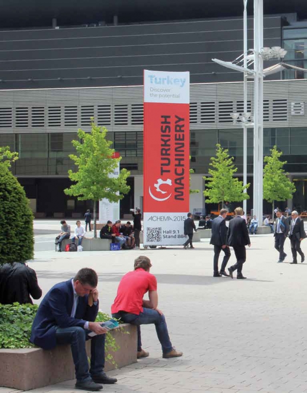Bu yıl 50 ülkeden 3 bin 813 katılımcıyı ağırlayan Achema Fuarını 170 bin kişi ziyaret etti. Etkinliğe Türkiye’den, 13’ü Makine İhracatçıları Birliği üyesi olan 31 firma katıldı. Makine Tanıtım Grubu 9.1’inci holde bulunan 48 metrekarelik tanıtım standıyla fuarda yerini aldı. MTG’nin makine alt sektör derneklerine uluslararası fuarlarda sunduğu destek kapsamında; Türk Pompa ve Vana Sanayicileri Derneği (POMSAD) Genel Sekreteri Gökhan Türktan, Araç ve Araçüstü Ekipman ve İş Makinaları Üreticileri Birliği Derneği (ARÜSDER) Genel Sekreteri Gürbüz Gürer ve Kazan ve Basınçlı Kap Sanayicileri Birliği (KBSB) Genel Koordinatörü Cemalettin Kutluca da MTG standında sektörleri hakkında ziyaretçileri bilgilendirerek üyeleriyle ilgili broşür ve dokümanları paylaştı.