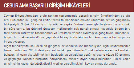 kadınlara en iyisini yapmak için hadi ayağa kalkın, gelin üretimi görün, bu havayı soluyun ve üretmenin ne kadar muhteşem bir duygu olduğunu anlayın’ demek için. Unutmayalım ki makine hayatın kalbi, makine üretmek de hayata dokunmaktır” vurgusunda bulundu.