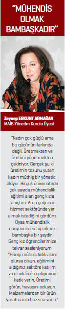 MAİB Yönetim Kurulu Üyesi Zeynep Erkunt Armağan da sunumunda, “Kadınlar doğurgan, titiz, sabırlı ve detaycı karakterleriyle üreticiliğin ve yöneticiliğin tüm vasıflarına sahipler. Kadınların bu gücün farkına varmasını istiyoruz. Üretimin tozunu yutan kadın yönetimde de başarılı olur, neyi nasıl yaptığını daha iyi bilir. Arzumuz kendilerini birkaç sektörle sınırlamamaları. Bizim tüm çabamız genç