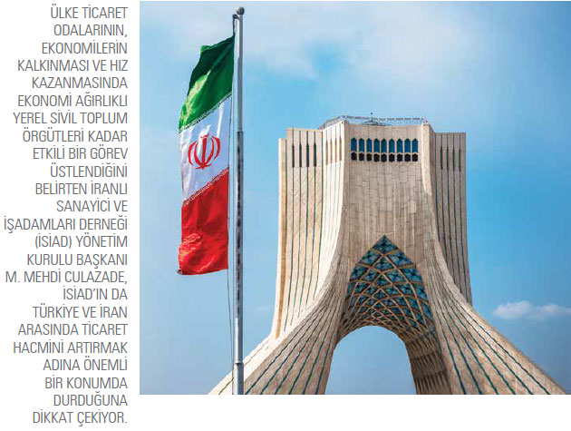 Ülke ticaret odaları, ekonomilerin kalkınması ve hız kazanmasında ekonomi ağırlıklı yerel sivil toplum örgütleri kadar önemli ve etkili bir köprü vazifesi görüyor. İSİAD da komşu ve dost iki ülkede karşılıklı yatırım ve ticari işbirliği fırsatlarını, iş yapma kültürünü tanıtmak, yatırım ilişkilerini hızlandırmak ve iki ülke iş dünyası arasında ticaret hacmini artırmak için bir köprü vazifesi görme misyonuyla 2001 yılında kuruldu. İmkânlar çerçevesinde de bu misyonumuza uygun iki taraf için de fayda sağlayacak çalışmalar sürdürmeye devam ediyoruz. Bu konuda İSİAD’ın Türkiye ve İran arasındaki ortak birçok projenin gerçekleşmesinde önemli bir paya sahip olduğunu söyleyebiliriz.