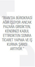 İran, zor bir pazardır: Bürokrasi daha ağır işler ancak pazara girdikten ve kendinizi kabul ettirdikten sonra ticaret yapmanız ve iş kurma şansınız da daha kolaylaşır. Türk makine üreticileri ve Türk makinelerinin İran için çok önemli fırsatlar barındırdığını söyleyebilirim. Avrupalı üreticilere nazaran çok uygun fiyatlar söz konusu olduğu için ve aynı kalitede mal ürettiklerinden Türkler, İranlılar için son derece cazip. İSİAD, bu konuda gerekli olduğu durumlarda her türlü bilgilendirmeyi yapmak için var. İran’a açılmak isteyen Türk ihracatçıları ve sanayicileri, hatta girişimciler, bizzat giderek İran pazarını yerinde incelemeli. İran’a gitmeden önce ise öncelikle başka ülkelere has olmayan anlaşma ve ticari mevzuatlar mutlaka gözden geçirilmeli; Türkiye’de görevli olan İran kökenli ticari ataşeler, TİM, TOBB, DEİK Türk-İran İş Konseyi ve İTO gibi kuruluşlardan bilgi alınmalı. Seyahat öncesinde iyi bir pazar araştırması yapmak, İran’da sağlıklı bir partner arayışını oldukça kolaylaştıracaktır. Ayrıca İran’da yatırım yapmış veya İran ile yıllardır çalışan firmalardan da tecrübe ve bilgi alışverişi mutlaka yararlı olacaktır.