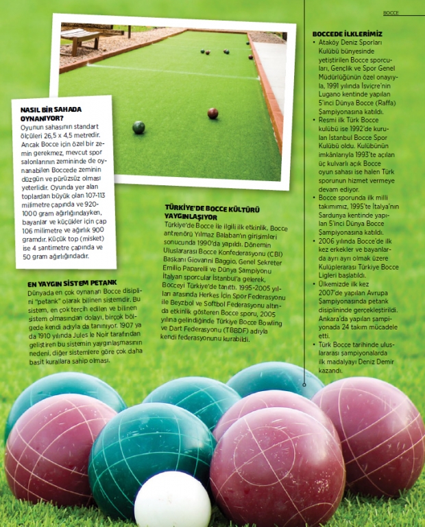 Bocce, hem bireysel hem de bir takım sporudur. Takımlar en az bir, en fazla üç kişiden oluşur. Tek kişilik Bocce karşılaşmaları dört topla oynanırken, diğer karşılaşmalar iki topla oynanır.