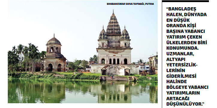 düşük seviyede olduğu, doğal gaz rezervlerinin ve verimli arazilerin bulunduğu dikkate alındığında; altyapı yetersizliklerinin giderilmesi halinde bölgeye yabancı yatırımların artacağı düşünülüyor. Bangladeş’te üretilen ürünlerin çoğu AB, Avustralya, Kanada ve Norveç’te vergiden muafken, Tayland, Hindistan ve Pakistan’da ise düşük vergilere tabi bulunuyor. Türkiye’nin Bangladeş’e yönelik ihracatında ise demir, mermer, alaşımsız çelikten yarı mamuller, demir-çelik çubuklar, alüminyum plaka, levha ve şeritler; dokuma maddelerini yıkama, kurutma, ütüleme makine ve cihazları; yeni ve ikinci el tekstil makineleri, tekstil kimyasalları ve cam öne çıkıyor.