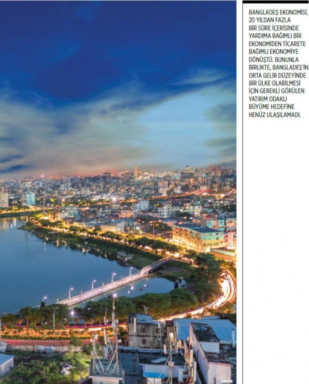 Hazır giyim sektörü ve işçi gelirleri ekonominin en dinamik olduğu alanlar olarak öne çıkarken, ülke tek bol kaynağı olan düşük ücretli, emek yoğun iş gücünü iyi bir şekilde kullanıyor. Kişi başına ortalama gelir yıllık 2 bin dolara yaklaşırken, uzmanlar GSYİH’nin yüzde 7 oranında büyümesinin ülkedeki yoksulluğu önemli oranda düşürebileceğini belirtiyor. Bu hedefe ulaşmadaki en önemli engel ise tasarruf ve yatırım oranlardaki düşük büyüme hızı olarak dikkat çekiyor. Bangladeş’te yurt içi tasarrufların GSYİH’ye oranı yaklaşık yüzde 20 iken, yatırımların GSYİH’ye oranı da yaklaşık yüzde 25 civarında seyrediyor.