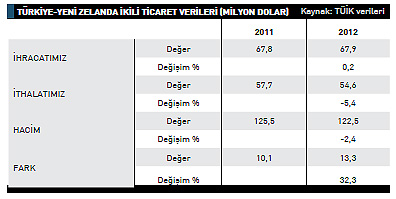 2012 yılında Türkiye’nin Yeni Zelanda’ya ihraç ettiği makinelerin değeri 8,7 milyon dolar oldu.