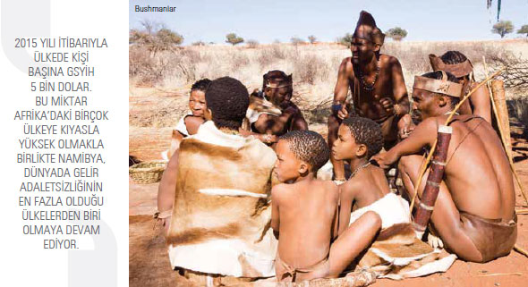 Ancak büyük oranda maden üretimine bağımlı olan ülke ekonomisi ham madde fiyatlarındaki kestirilemeyen ve beklenmedik dalgalanmalara açık hale geliyor ve ciddi düzeyde kırılgan bir yapı sergiliyor. 2015 yılı itibarıyla ülkede kişi başına GSYİH 5 bin dolar seviyesinde ilerliyordu. Bu miktar Afrika’daki birçok ülkeye kıyasla yüksek olmakla birlikte Namibya, dünyada gelir adaletsizliğinin en fazla olduğu ülkelerden biri olmayı da sürdürüyor.